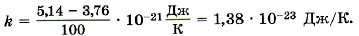 Это одна из наиболее важных постоянных в молекулярно-кинетической теории. Зная постоянную Больцмана, можно найти значение абсолютного нуля по шкале Цельсия. Для этого найдём сначала значение абсолютной температуры, соответствующее 0 °С. Так как при 0 °С kT1 = 3,76 • 10-21 Дж, то