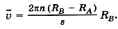 По проволочке пропускают электрический ток. В стенке этого цилиндра имеется узкая щель О. Воздух из цилиндров откачан. Цилиндр В находится при комнатной температуре. Вначале прибор неподвижен. При прохождении тока по нити она нагревается и при температуре 1200 °С атомы серебра испаряются. Внутренний цилиндр заполняется газом из атомов серебра. Некоторые атомы пролетают через щель О и, достигнув внутренней поверхности цилиндра В, осаждаются на ней. В результате прямо против щели образуется узкая полоска D серебра (рис. 9.7, б). Затем цилиндры приводят во вращение с большим числом оборотов n в секунду (до 1500 1/c). Теперь за время t, необходимое атому для прохождения пути, равного разности радиусов цилиндров RB - RА, цилиндры повернутся на некоторый угол φ. В результате атомы, движущиеся с постоянной скоростью, попадают на внутреннюю поверхность большого цилиндра не прямо против щели О (рис. 9.7, в), а на некотором расстоянии s от конца радиуса, проходящего через середину щели (рис. 9.7, г): ведь атомы движутся прямолинейно. Если через υB обозначить модуль скорости вращения точек поверхности внешнего цилиндра, то s = υBt = 2 πnRBt. (9.20) В действительности атомы серебра имеют разные скорости. Поэтому расстояния s для различных атомов будут несколько различаться. Под s следует понимать расстояние между участками на полосках D и D' с наибольшей толщиной слоя серебра. Этому расстоянию будет соответствовать средняя скорость атомов, которая равна Подставляя в эту формулу значение времени t из выражения (9.20), получаем