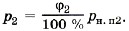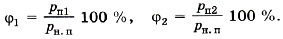 Задача 4. В комнате с закрытыми окнами при температуре 15 °С относительная влажность φ = 10 %. Чему станет равна относительная влажность, если температура в комнате повысится на 10 °С? Давление насыщенного пара при 15 °С рн. п1 = 12,8 мм рт. ст., а при 25 °С рн п2 = 23,8 мм рт. ст. Р е ш е н и е. Так как пар ненасыщенный, то парциальное давление пара изменяется по закону Шарля р1/Т1 = р2/Т2. Из этого уравнения можно определить давление ненасыщенного пара р2 при Т2: р2 = р1Т2/Т1. Относительная влажность при Т1 равна: