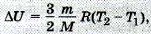 Механическая энергия тела (системы) как целого не входит во внутреннюю энергию. Например, внутренняя энергия газов в двух одинаковых сосудах при равных условиях одинакова независимо от движения сосудов и их расположения относительно друг друга. Вычислить внутреннюю энергию тела (или её изменение), учитывая движение отдельных молекул и их положения относительно друг друга, практически невозможно из-за огромного числа молекул в макроскопических телах. Поэтому необходимо уметь определять значение внутренней энергии (или её изменение) в зависимости от макроскопических параметров, которые можно непосредственно измерить. Внутренняя энергия идеального одноатомного газа. Вычислим внутреннюю энергию идеального одноатомного газа. Согласно модели молекулы идеального газа не взаимодействуют друг с другом, следовательно, потенциальная энергия их взаимодействия равна нулю. Вся внутренняя энергия идеального газа определяется кинетической энергией беспорядочного движения его молекул. Для вычисления внутренней энергии идеального одноатомного газа массой т нужно умножить среднюю кинетическую энергию одного атома на число атомов. Учитывая, что kNA = R, получим формулу для внутренней энергии идеального газа: