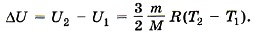 Глава 13. Основы термодинамики § 75. Примеры решения задач по теме «Внутренняя энергия. РаботаДля решения задач нужно уметь вычислять внутреннюю энергию и работу, пользуясь формулами (13.1) и (13.4). Надо ещё иметь в виду, что величины A, Q, ΔU могут быть как положительными, так и отрицательными. Задача 1. Аэростат объёмом V = 500 м3 наполнен гелием под давлением р = 105 Па. В результате солнечного нагрева температура газа в аэростате поднялась от t1 = 10 °С до t2 = 25 °С. На сколько увеличилась внутренняя энергия газа? Р е ш е н и е. Гелий является одноатомным газом, поэтому его внутренняя энергия определяется формулой (13.1). При температуре Т1 эта энергия равна