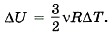 Задача 3. Чему равна работа, совершённая газом в количестве 3 моль при сжатии, если температура увеличилась на 100 К? Потери тепла не учитывайте. Р е ш е н и е. При сжатии внешняя сила совершает положительную работу, за счёт которой происходит изменение внутренней энергии и соответственно температуры газа, т. е. А = ΔU. Изменение внутренней энергии