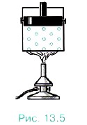 Изменить внутреннюю энергию любого тела можно, совершая работу, нагревая или, наоборот, охлаждая его. Так, при ковке металла совершается работа, и он разогревается, в то же время металл можно разогреть над горящим пламенем. Также если закрепить поршень (рис. 13.5), то объём газа при нагревании не меняется и работа не совершается. Но температура газа, а следовательно, и его внутренняя энергия возрастают. Внутренняя энергия может увеличиваться и уменьшаться, поэтому количество теплоты может быть положительным и отрицательным.