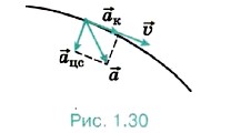 В общем случае ускорение направлено под углом к вектору скорости (рис. 1.30). Полное ускорение характеризует изменение скорости и по модулю, и по направлению. Часто полное ускорение Единица ускорения. Движение точки может происходить как с переменным, так и с постоянным ускорением. Если ускорение точки постоянно, то отношение изменения скорости к промежутку времени, за которое это изменение произошло, будет одним и тем же для любого интервала времени. Поэтому, обозначив через Δt некоторый произвольный промежуток времени, а через Δ
