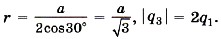 Задача 4. В вершинах равностороннего треугольника со стороной а = 3 см находятся три точечных заряда q1 = q2 = 10-9 Кл, q3 = -2 • 10-9 Кл. Определите напряжённость электрического поля в центре треугольника в точке О.