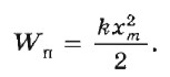 При движении шарика влево деформация пружины становится меньше, и потенциальная энергия системы уменьшается. Но одновременно увеличивается скорость и, следовательно, возрастает кинетическая энергия. В момент прохождения шариком положения равновесия потенциальная энергия колебательной системы становится равной нулю (Wп = 0 при х = 0). Кинетическая же энергия достигает максимума. После прохождения положения равновесия скорость шарика начинает уменьшаться. Следовательно, уменьшается и кинетическая энергия. Потенциальная же энергия системы снова увеличивается. В крайней левой точке она достигает максимума, а кинетическая энергия становится равной нулю. Таким образом, при колебаниях периодически происходит переход потенциальной энергии в кинетическую и обратно. Нетрудно проследить за тем, что такие же превращения механической энергии из одного ее вида в другой происходят и в случае математического маятника. Полная механическая энергия при колебаниях тела, прикрепленного к пружине, равна сумме кинетической и потенциальной энергий колебательной системы: