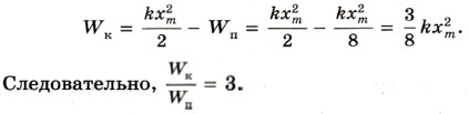 4. Груз, прикрепленный к пружине, колеблется на горизонтальном гладком стержне (см. рис. 3.3). Определите отношение кинетической энергии груза к потенциальной энергии системы в момент, когда груз находится в точке, расположенной посредине между крайним положением и положением равновесия. Р е ш е н и е. Координата указанной точки равна половине амплитуды колебаний: