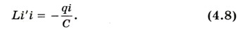 Производная силы тока по времени есть не что иное, как вторая производная заряда по времени, подобно тому как производная скорости по времени (ускорение) есть вторая производная координаты по времени. Подставив в уравнение (4.8) i' = q" и разделив левую и правую части этого уравнения на Li, получим основное уравнение, описывающее свободные электрические колебания в контуре: