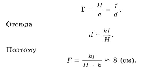 2. Изображение предмета имеет высоту Н = 2 см. Какое фокусное расстояние F должна иметь линза, расположенная на расстоянии ƒ = 4 м от экрана, чтобы изображение данного предмета на экране имело высоту h = 1м? Р е ш е н и е . Из формулы линзы