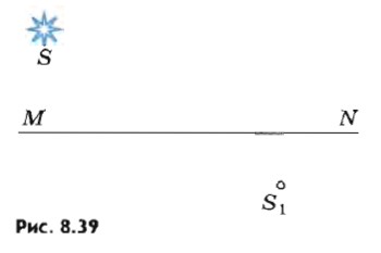 Глава 8. Световые волны Световые волны: Примеры решения задач1. На рисунке 8.39 показано расположение главной оптической оси MN линзы, светящейся точки S и ее изображения S1. Найдите построением оптический центр линзы и ее фокусы. Определите, собирающей или рассеивающей является эта линза, действительным или мнимым является изображение.