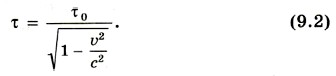 Очевидно, что τ > τ0. В этом состоит релятивистский эффект замедления времени в движущихся системах отсчета: движущиеся часы «тикают» медленнее, чем покоящиеся. Если υ « с, то в формулах (9.1) и (9.2) можно пренебречь величиной