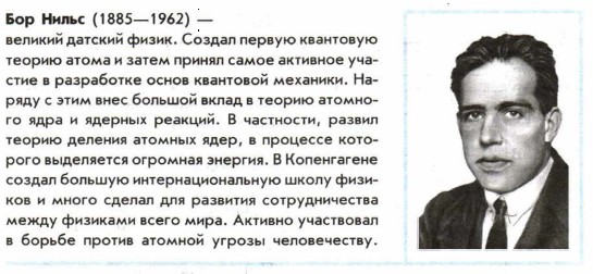 Глава 12. Атомная физика § 94. Квантовые постулаты Бора. Модель атома водорода по БоруВыход из крайне затруднительного положения в теории атома был найден в 1913 г. датским физиком Нильсом Бором на пути дальнейшего развития квантовых представлений о процессах в природе. Эйнштейн оценивал проделанную Бором работу «как высшую музыкальность в области мысли», всегда его поражавшую. Основываясь на разрозненных опытных фактах, Бор благодаря гениальной интуиции правильно предугадал путь развития теории атома. Постулаты Бора. Последовательной теории атома Бор, однако, не разработал. Он в виде постулатов сформулировал основные положения новой теории. Причем и законы классической физики не отвергались им безоговорочно. Новые постулаты, скорее, налагали лишь некоторые ограничения на рассматриваемые классической физикой движения. Успех теории Бора был тем не менее поразительным, и всем ученым стало ясно, что Бор нашел правильный путь развития теории. Этот путь привел впоследствии к созданию стройной теории движения микрочастиц — квантовой механики. Первый постулат Бора гласит: существуют особые, станционарные состояния атома, находясь в которых атом не излучает энергию, при этом электроны в атоме движутся с укорением. Каждому стационарному состоянию соответствует определенная энергия Еn. Согласно второму постулату Бора излучение света происходит при переходе атома из стационарного состояния с большей энергией Ek в стационарное состояние с меньшей энергией Еn. Энергия излученного фотона равна разности энергий стационарных состояний: hvkn = Еk - Еn (12.2) Отсюда частоту излучения можно выразить так: