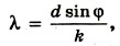 где d — период решетки; k — порядок спектра; φ — угол, под которым наблюдается максимум света соответствующего цвета. Поскольку углы, под которыми наблюдаются максимумы 1-го и 2-го порядков, не превышают 5°, можно вместо синусов углов использовать их тангенсы. Из рисунка 18.5 видно, что
