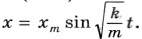 Периодические изменения физической величины в зависимости от времени, происходящие по закону синуса или косинуса, называются гармоническими колебаниями. Вначале мы будем рассматривать гармонические изменения координаты. В дальнейшем ознакомимся с гармоническими изменениями других величин. Амплитуда колебаний. Амплитудой гармонических колебаний называется модуль наибольшего смещения тела от положения равновесия. Амплитуда может иметь различные значения в зависимости от того, насколько мы смещаем тело от положения равновесия в начальный момент времени, или от того, какая скорость сообщается телу. Амплитуда определяется начальными условиями, а точнее энергией, сообщаемой телу. Но максимальные значения модуля синуса и модуля косинуса равны единице. Поэтому решение уравнения (3.11) не может выражаться просто синусом или косинусом. Оно должно иметь вид произведения амплитуды колебаний хт на синус или косинус. Р е ш е н и е уравнения, описывающего свободные колебания. Запишем решение уравнения (3.11) в следующем виде: