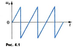 Повторяя опыт примерно в одинаковых условиях, получали в одних случаях один результат, а в других — другой. Далеко не сразу поняли, что при разрядке конденсатора через катушку в электрической цепи возникают колебания. За время разрядки конденсатор успевает много раз перезарядиться, и ток меняет направление много раз, в результате чего сердечник может намагничиваться различным образом. Периодические или почти периодические изменения заряда, силы тока и напряжения называются электромагнитными колебаниями. Обычно эти колебания происходят с очень большой частотой, значительно превышающей частоту механических колебаний. Поэтому для их наблюдения и исследования очень удобен электронный осциллограф. В электронно-лучевой трубке осциллографа узкий пучок электронов попадает на экран, способный светиться при его бомбардировке электронами. На горизонтально отклоняющие пластины трубки подается переменное напряжение развертки uр пилообразной формы (рис. 4.1).