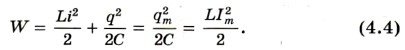 где i — сила переменного тока; L — индуктивность катушки. Полная энергия W электромагнитного поля контура равна сумме энергий его магнитного и электрического полей: