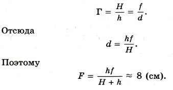 2. Изображение предмета имеет высоту Н = 2 см. Какое фокусное расстояние F должна иметь линза, расположенная на расстоянии ƒ = 4 м от экрана, чтобы изображение данного предмета на экране имело высоту h = 1м? Р е ш е н и е . Из формулы линзы