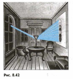 Глава 8. Световые волны § 66. Дисперсия светаЗанимаясь усовершенствованием телескопов, Ньютон обратил внимание на то, что изображение, даваемое объективом, по краям окрашено. Он заинтересовался этим и первый «исследовал разнообразие световых лучей и проистекающие отсюда особенности цветов, которых до того времени никто даже не подозревал» (слова из надписи на надгробном памятнике Ньютону). Радужную окраску изображения, получаемого с помощью линзы, наблюдали, конечно, и до него. Было замечено также, что радужные края имеют предметы, рассматриваемые через призму. Пучок световых лучей, прошедших через призму, окрашивается по краям. Опыт Ньютона был гениально прост. Ньютон догадался направить на призму световой пучок малого поперечного сечения. Пучок солнечного света проходил в затемненную комнату через маленькое отверстие в ставне. Падая на стеклянную призму, он преломлялся и давал на противоположной стене удлиненное изображение с радужным чередованием цветов. Стилизованное изображение опыта Ньютона показано на рисунке 8.42. Следуя многовековой традиции, согласно которой радуга считалась состоящей из семи основных цветов, Ньютон тоже выделил семь цветов: фиолетовый, синий, голубой, зеленый, желтый, оранжевый и красный. Саму радужную полоску Ньютон назвал спектром.