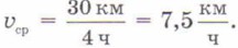 § 11. Неравномерное движение Задачи, которые могут показаться одинаковымиРассмотрим две часто встречающиеся задачи на нахождение средней скорости. Задачи эти разные, но могут показаться одинаковыми — в этом и заключается их главная трудность. РЕШИМ ЗАДАЧИ Школьник в течение часа ехал на велосипеде со скоростью 15 км/ч, а потом ещё час шёл пешком со скоростью 5 км/ч. Найдём его среднюю скорость за всё время движения. Р е ш е н и е. За 2 ч школьник преодолел 20 км. Поэтому Обратите внимание: если на двух участках тело двигалось с различными скоростями одинаковое время, то средняя скорость тела равна среднему арифметическому скоростей на этих участках. Школьник сначала ехал на велосипеде со скоростью 15 км/ч, а потом шёл пешком со скоростью 5 км/ч. Найдём среднюю скорость за всё время движения, если 15 км школьник проехал и столько же прошёл. Р е ш е н и е. Первую половину пути (15 км) школьник проехал за 1ч, а вторую половину (тоже 15 км) прошёл за 3 ч. Значит, на весь путь школьник затратил 4 ч. Поэтому Обратите внимание: если на двух участках тело двигалось с различной скоростью и прошло при этом одинаковый путь, то средняя скорость тела не равна среднему арифметическому скоростей на этих участках. Почему же во второй задаче средняя скорость школьника меньше, чем в первой? Дело в том, что по условию первой задачи школьник ехал и шёл одинаковое время (по 1 ч), а из условия второй задачи следует, что он шёл в 3 раза дольше, чем ехал. А поскольку шёл он с меньшей скоростью, чем ехал, его средняя скорость во второй задаче оказалась меньшей.