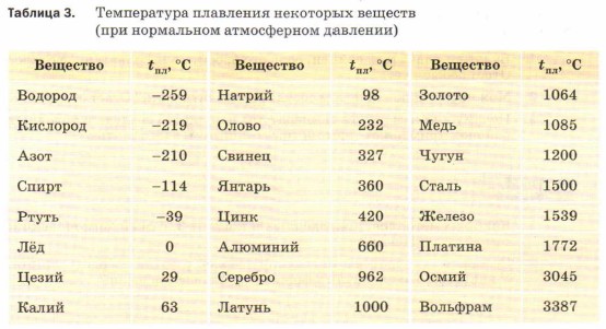 Из таблицы 3 видно, в каких широких пределах лежат температуры плавления различных веществ.