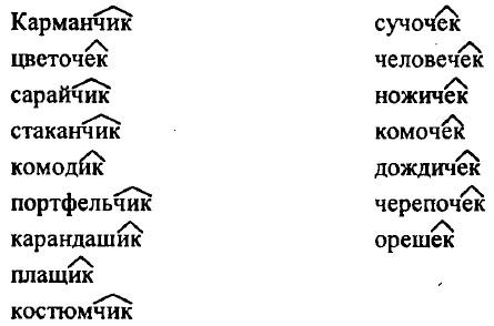 2. В суффиксах -лив- и -чив- пишется и (заботливый, доверчивый). Безударные суффиксы -ов-, -оват-, -овит- пишутся после твердых согласных (меховой, виноватый); -ев-, -еват-, -евит- — после мягких согласных, после шипящих и «ц» (теневой, кольцевой, ситцеватый). Если корень оканчивается на г, к, х, то после него пишется суффикс -оньк-, например: легонький, плохонький (хотя возможны параллельные формы: легенький, плохенький). После других согласных пишется суффикс -еньк-: веселенький, голубенький. Упр. 116 (101). Суффикс -ик (-ник, -чик) сохраняет гласную при склонении, суффикс -ек имеет беглую гласную.