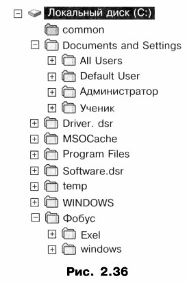 Операционная система позволяет получить на экране компьютера изображение файловой системы в виде дерева (рис. 2.36).