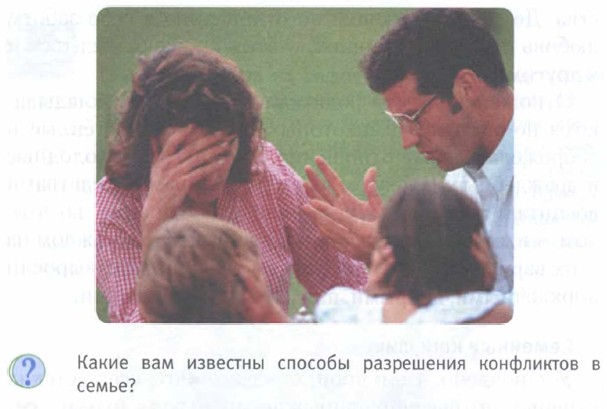Глава 2. Ближайшее окружение подростка § 20. Семейные отношенияСемейные конфликтыУстановлено, что в происхождении 90% всех детских нервных потрясений наиважнейшую роль играют семейные конфликты. Ни одна семья, как ни одна другая общность людей, не обходится без конфликтов. Конфликт означает, что в семейных отношениях существуют проблемы. Необходим переход на другое качество взаимоотношений между людьми. Таким образом, конфликт позволяет разрешить накопившиеся проблемы. Подобно грозе, он очищает воздух и атмосферу в семье. Причин семейных конфликтов очень много: разные взгляды на семейную жизнь; грубость, насилие, неуважительное отношение друг к другу; неумение общаться; вредные привычки; нежелание мужа помогать жене в домашних делах; бытовая неустроенность; неуважительное отношение мужа к родственникам жены и наоборот; различия в духовных интересах и потребностях. И конечно, отсутствие взаимопонимания между родителями и детьми.