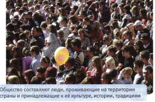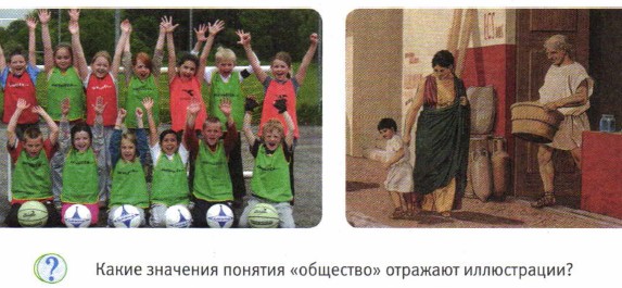 Глава 1. Общество — большой «дом» человечества Что такое общество?Откуда появилось общество? Что такое общество? Что такое общественные отношения? Слово «общество» известно каждому из вас. Но стоит задуматься — что оно обозначает? Понятие обществаСовременный человек не может существовать без других людей. В 5 классе вы узнали, что в человеке соседствуют два начала: биологическое и социальное. Последнее означает, что всю жизнь, от младенчества до старости, мы учимся жить в обществе, усваиваем правила поведения, осваиваем различные социальные роли. Обратившись к историческому прошлому человечества, вспомним, что первобытные люди объединялись в родовые общины, чтобы совместно добывать пищу, заботиться о детях и стариках, спасаться от стихийных бедствий, защищаться от врагов и от нападений диких животных, осваивать новые территории. Люди всё это делали совместно, сообща. Отсюда и произошли понятия «сообщество», «общество». Объединение и взаимодействие древних людей помогли выжить человеческому роду. Учёные считают, что общество, в котором мы живём, появилось одновременно с появлением на Земле «человека разумного» — или, как его ещё называют, человека современного вида. Это произошло около 40 тыс. лет назад. Понятие «общество» чрезвычайно многообразно. Оно может включать в себя два десятка человек — 6 «А» класс, а может больше миллиарда — современные Китай и Индия. Обществом могут называть объединения людей по интересам. Например, общество любителей подводного плавания или общество защиты дикой природы. Обществом называют также народ, проживающий на территории данной страны, государства. Эти понятия следует различать: страна — географическое понятие, государство — политическое, а общество — социальное (от латинских слов socium — общество; socialis — общественный).