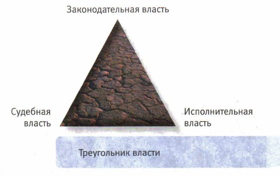 Все ветви государственной власти в стране упорядочивают жизнь общества. Законодательная — издавая законы, исполнительная — следя за их исполнением. Исполнять закон должны все — от президента до рабочего. Перед законом все равны. Принцип разделения властей можно представить в виде треугольника.
