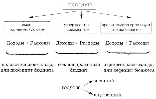 Глава 2. Экономическая сфера § 15. Бюджет государства и семьиС семейным бюджетом проще: его не надо утверждать. Другое важное отличие состоит в том, что из государственного бюджета оплачивается управляющая надстройка — многочисленная армия чиновников, на ее оплату уходит львиная часть всех доходов. В семье никакую управленческую верхушку оплачивать не надо. Не надо тратиться на внешнюю оборону. Хотя большинство других статей расходов — на культуру, образование, питание, транспорт, социальные нужды — в том и другом случаях совпадают. Государственные бюджеты, как и личные бюджеты, являются финансовыми планами, сопоставляющими ожидаемые доходы и расходы.