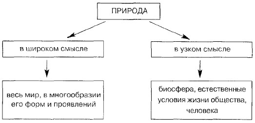 Глава 1. Общество и человек Человек, природа, обществоЧеловек, природа и общество — тесно связаны между собой. Вначале существовал только природный мир, затем из него выделился человек, который много позже, вместе с себе подобными, создал общество. Такова хронологическая цепочка событий. В широком смысле под природой понимается все сущее, весь мир в многообразии его форм и проявлений. В этом смысле природа стоит в одном ряду с такими обобщенными понятиями, как материя, универсум, Вселенная. В узком смысле природа — совокупность естественных условий существования человеческого общества. Ее еще можно назвать биосферой, или активной оболочкой Земли, создающей и защищающей жизнь на нашей планете.