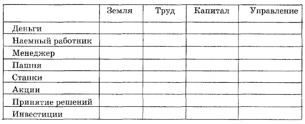 Предприятие — это фабрики, заводы, фермы, шахты, магазины, выполняющие одну или несколько специфических функций по производству и распределению товаров. В свою очередь предприятия состоят из множества цехов, специализирующихся по циклам производства (цех снабжения, металлургический, штамповочный, транспортный и т.д.), но заняты они одним и тем же, скажем, изготовлением автомобиля. Деятельность всех предприятий направлена на удовлетворение потребностей населения. Потребности — еще одна экономическая категория. Для экономистов потребности — двигатель торговли. Кому нужны заводы, оптовые рынки или бюро услуг, не будь у людей потребностей? Экономика зависит от силы, объема, направленности наших потребностей. Ее отрасли, которые кроме того называют индустриями, например индустрия туризма, пищевая индустрия, оборонная индустрия и т.д., конкурируют в борьбе за потребителя. Понятия: экономика, деньги, ресурсы, производство, распределение, потребление, предприятие, отрасль. Вопросы и задания 1. Что такое экономика? Можете ли вы назвать экономикой ведение домашнего хозяйства? 2. Какие четыре сферы составляют основу экономики? 3. Как взаимосвязаны предприятие и отрасль? Если предприятие очень большое, например, на нем трудится более 200 тыс. человек, выпускающих грузовые автомобили, то можно ли его называть отраслью? 4. Что такое информационные ресурсы? Правильно ли утверждать, что основным источником информации в экономике является сегодня компьютер? 5. Что такое управление и кто такой менеджер? * Чем он отличается от предпринимателя? *6. Недалеко от своего дома найдите 8—10 хозяйственных единиц — магазины, больницы, банки и т.д. Определите их отраслевую принадлежность. Кто какую пользу приносит обществу. *7. Можно ли считать экономическую сферу самой важной в структуре общества? Проблема. На каком уровне каждому современному человеку необходимо знать экономику? Практикум. Что такое ресурсы экономики и какую роль они играют? Попробуйте проанализировать виды ресурсов с помощью таблицы.
