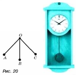 а) какое количество жидкости надо налить в каждый сосуд, чтобы уровни жидкости в них были одинаковы; б) сколько жидкости надо налить во второй сосуд, чтобы получить высоту уровня такую же, как в первом сосуде, когда в него налито 1,5 л жидкости. 1) Распределите, кто выполняет задание а), а кто — задание б), и выполните их. 2) Объясните друг другу, как вы рассуждали при выполнении задания, и изобразите схематически, какую примерную форму имеют эти сосуды. 291. Время, за которое маятник совершает полное колебание, т. е. из положения ОА переходит в положение ОC, а затем снова возвращается в положение ОА (рис. 20), называется периодом колебания маятника. Изучая зависимость периода колебания маятника Т от длины нити l, составили таблицу: