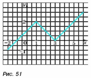 Задайте эту функцию одной фор мулой, используя знак модуля. 344. На рисунке 51 изображён гра фи к функции, область он ределе ния которой есть множество зна чений х, таких, что -2 ≤ x ≤ 6 Задайте эту функцию аналити чески.