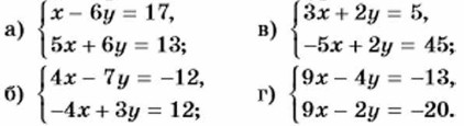 Заметим, что если коэффициенты при одной из переменных являются противоположными числами, то решение сразу начинают с почленного сложения уравнений. Упражнения 1082. Решите систему уравнений: