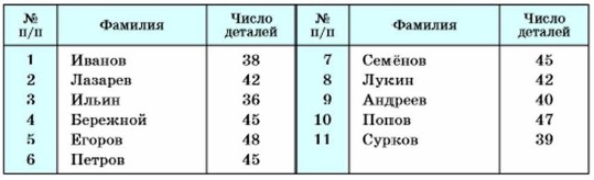 177. В таблице показано число деталей, изготовленных за смену рабочими одной бригады: