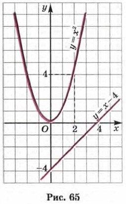 2) Построим в одной системе координат графики функций у = х2 и у = = х - 4 (рис. 65).