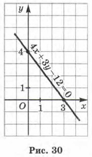 4) Проведём через точки (0; 4) и (3; 0) прямую. Это и есть искомый график (рис. 30).