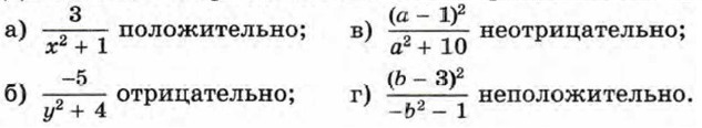 Ответы4. а) -10; б) 2,5. 8. 12. д) Все числа, кроме 6 и -6; е) все числа, кроме 0 и -7. 18. а) При а = 0; б) при а = 3. 19. При b = 0; б) при b = 2.