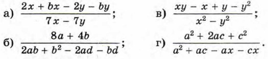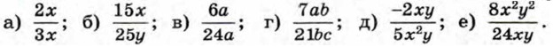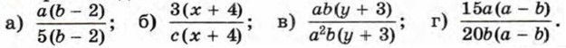 § 1. Рациональне дроби и их свойства Основное свойство дроби. Сокращение дробей (продолжение)Упражнения23. Укажите общий множитель числителя и знаменателя и сократите дробь: