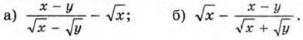§ 9. Дробные рациональные уравнения Решение дробных рациональных уравнений: ОтветыУпражнения для повторения613. Найдите значение выражения х2 - 2ху + у2 при x = 3 + √5, у = 3 - √5. 614. Принадлежат ли графику функции у = х2 + 2х + 5 точки A(1,5; 7,25), В(-3,2; 9) и С(23 - 1; 7)? 615. Упростите выражение: