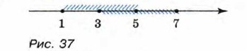 Пример 1. Найдём пересечение и объединение числовых промежутков [1; 5] и [3; 7] (рис. 37).