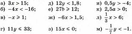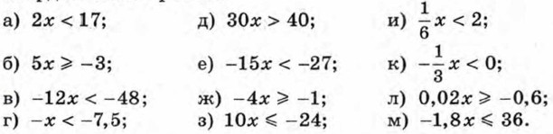 Приведём подобные члены в левой части неравенства и запишем результат в виде 0 • х: 0 • х < -12. Полученное неравенство не имеет решений, так как при любом значении х оно обращается в числовое неравенство 0 < -12, не являющееся верным. Значит, не имеет решений и равносильное ему заданное неравенство. Ответ: решений нет. Упражнения833. Является ли решением неравенства 5у > 2 (у - 1) + 6 значение у, равное: а) 8; б) -2; в) 1,5; г) 2? 834. Укажите два каких-либо решения неравенства 2х < х + 7. 835. Решите неравенство и изобразите множество его решений на координатной прямой: