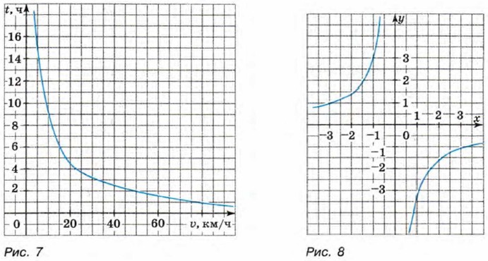 191. На рисунке 7 построен график зависимости времени, затрачиваемого на путь из пункта А в пункт В, от скорости движения. С помощью графика ответьте на вопросы: