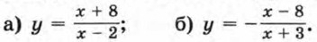 183. Покажите схематически, как расположен график функции а) m > 0, n < 0; б) m < 0, n > 0. 184. Постройте график функции 185. Укажите функции, графиками которых являются гиперболы.
