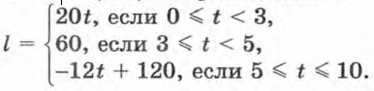 201. Длина прямоугольника ABCD (рис. 47) равна 10 см, а ширина — 7 см. Отрезок MN передвигается от отрезка AD до отрезка ВС, оставаясь параллельным отрезку AD. Площадь у (см2) закрашенной части есть функция расстояния х (см) от точки D до точки N. Задайте функцию у = ƒ(x) формулой. Найдите область значений этой функции. 202. В равнобедренном треугольнике АВС основание АС равно 6 см, а боковая сторона — 5 см. Концы подвижного отрезка, параллельного основанию, лежат на боковых сторонах. Его длина равна у (см), а расстояние от вершины — х (см). Задайте формулой у как функцию от х. Найдите область значений этой функции. 203. Функция задана формулой 204. Катер отправляется от пристани А и идет вниз по реке к пристани В, до которой 60 км. После двухчасовой стоянки на пристани В он возвращается обратно. Расстояние l (км), пройденное катером от пристани А, зависит от времени t (ч), отсчитываемого с момента отправления катера из А до момента возвращения. Собственная скорость катера 16 км/ч, скорость течения реки 4 км/ч. Задайте l как функцию от t формулами, постройте график функции, опишите по графику ее свойства и объясните их физический смысл. 205. Начертите график какой-нибудь функции, областью определения которой является промежуток [-3; 4], а областью значений — промежуток [0; б]. 206. Найдите нули функции (если они существуют):