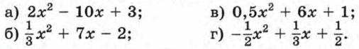 222. Найдите наибольшее или наименьшее значение квадратного трехчлена: а) 3x2 - 4x + 5; б) -3x2 + 12x. 223. Сумма положительных чисел а и b равна 40. При каких значениях а и b их произведение будет наибольшим? 224. Разложите на множители квадратный трехчлен: