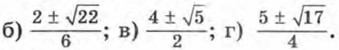 215. Составьте какой-нибудь квадратный трехчлен, корнями которого являются числа: а) -7 и 2; б) 3 - √2 и 3 + √2. 216. При каком значении р выражение 2рх2 - 2х - 2р - 3 становится квадратным трехчленом, одним из корней которого является число нуль? Найдите другой корень. 217. Докажите, что квадратный трехчлен имеет корни, и найдите их сумму и произведение: