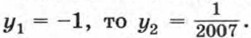 2007y2 + 2006y -1 = 0. Применение формулы корней квадратного уравнения приводит здесь к громоздким вычислениям. Поступим иначе. Попытаемся найти целый корень уравнения, если он существует. По теореме 2 он является делителем числа -1, т. е. равен 1 или -1. Подставляя в уравнение числа 1 и -1, убеждаемся, что корнем уравнения является число -1. Второй корень квадратного уравнения найдем, используя теорему Виета. Так как Из равенств