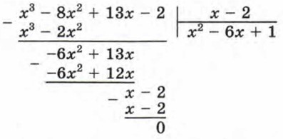 Для того чтобы найти многочлен Р(х), разделим многочлен х3 - 8х2 + 13х - 2 на двучлен х - 2. Деление многочленов выполним «уголком»:
